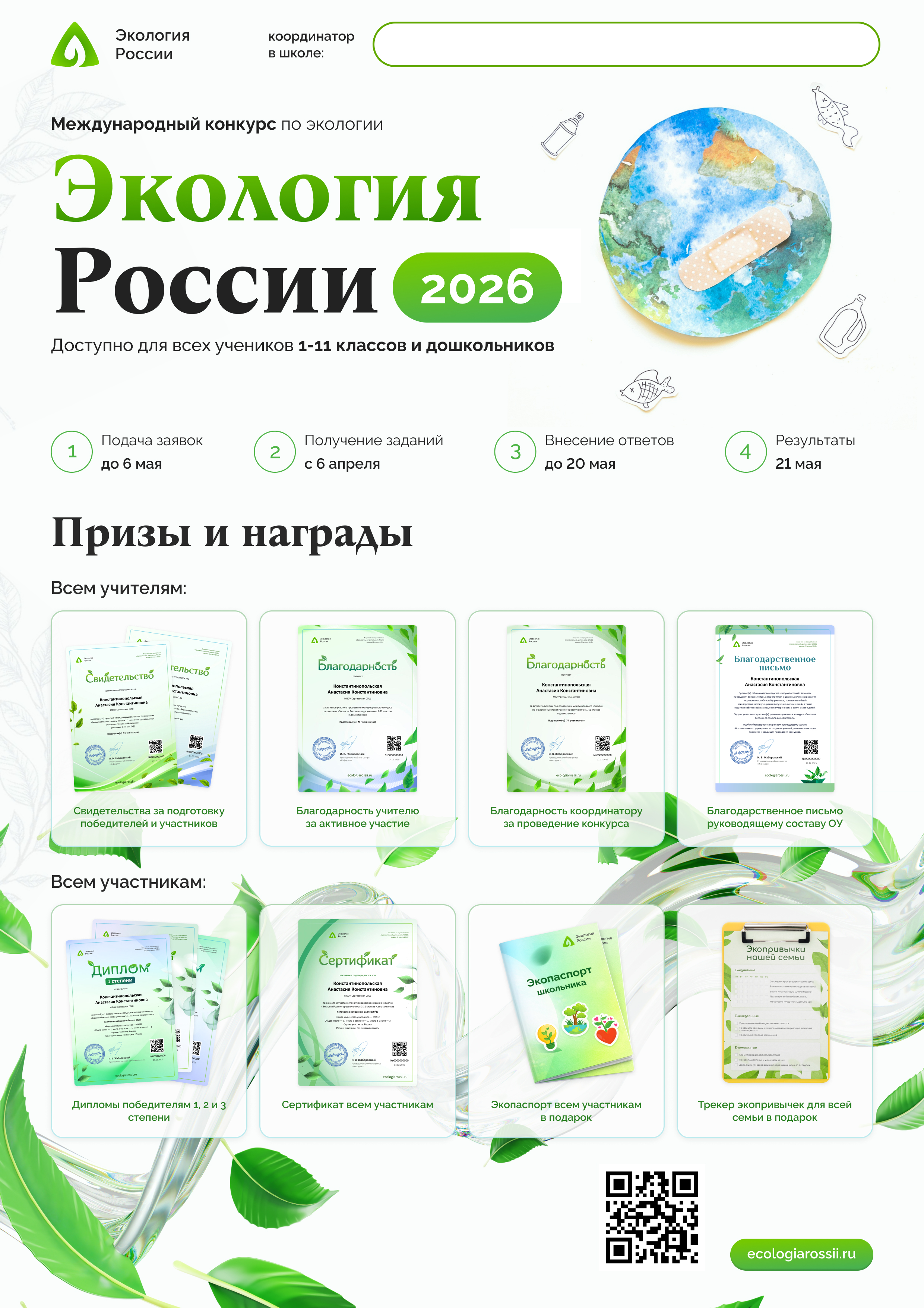 Участие в международном конкурсе «Экология России» — это прекрасная возможность проверить свои знания в области экологии, воспитать любовь и бережное отношение к природным ресурсам, узнать интересные факты о защите уникальных видов животного и растительного мира.